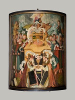 1,80 x 1,70 m groß ist ein Rundbild im Erfurter Dom, welches eine sehr seltsame Darstellung zeigt: Die Hostienmühle. In der Mitte ist eine Mühle zu sehen, in das die vier Symbole der Evangelisten Schriftbänder mit den Einsetzungsworten der heiligen Messe werfen. Das Schriftband, das dann aus dem Trichter der Mühle kommt, verwandelt sich im Kelch in das Christkind. Zu lesen ist dort: „Et verbum caro factum est“ – „Und das Wort ist Fleisch geworden!“ Die vier abendländischen Kirchenväter halten den Kelch mit dem Christkind. Die Datierung des Gemäldes auf das Jahr 1534 weist auf die Zeit nach der Reformation hin, wo es wichtig wurde, die Verbindung zwischen dem biblischen Wort und dem Sakrament der Eucharistie zu betonen, denn diese Verbindung drohte auseinander zu fallen.